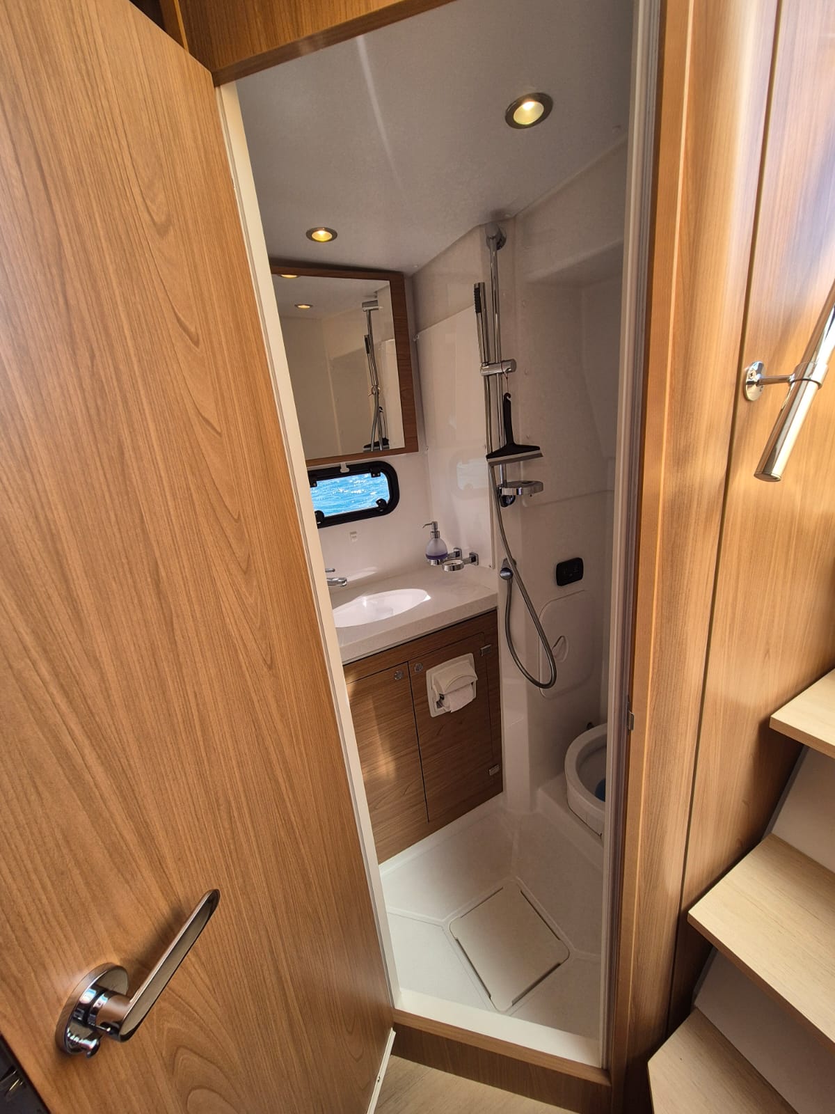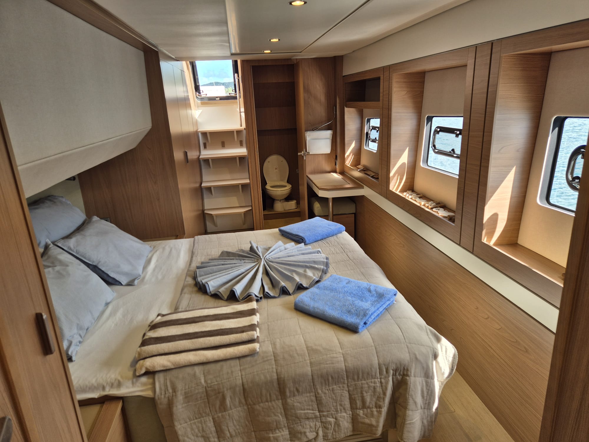 Whether you’re in the expansive saloon, seamlessly connected to both the aft and forward cockpits, enjoying the front cockpit with direct access from the saloon, or relaxing on the spacious flybridge, you’ll experience the comfort and luxury typically reserved for much larger yachts.