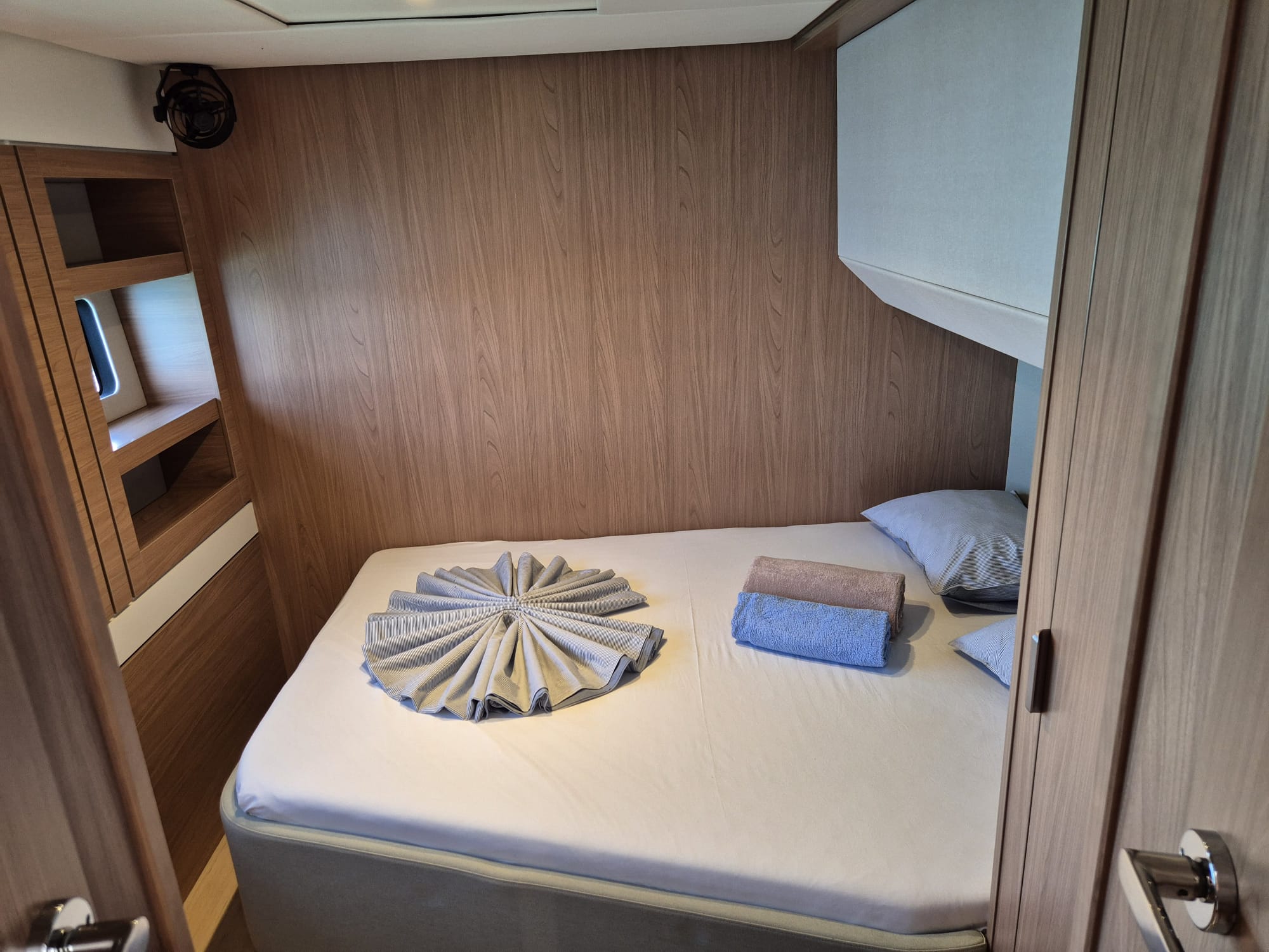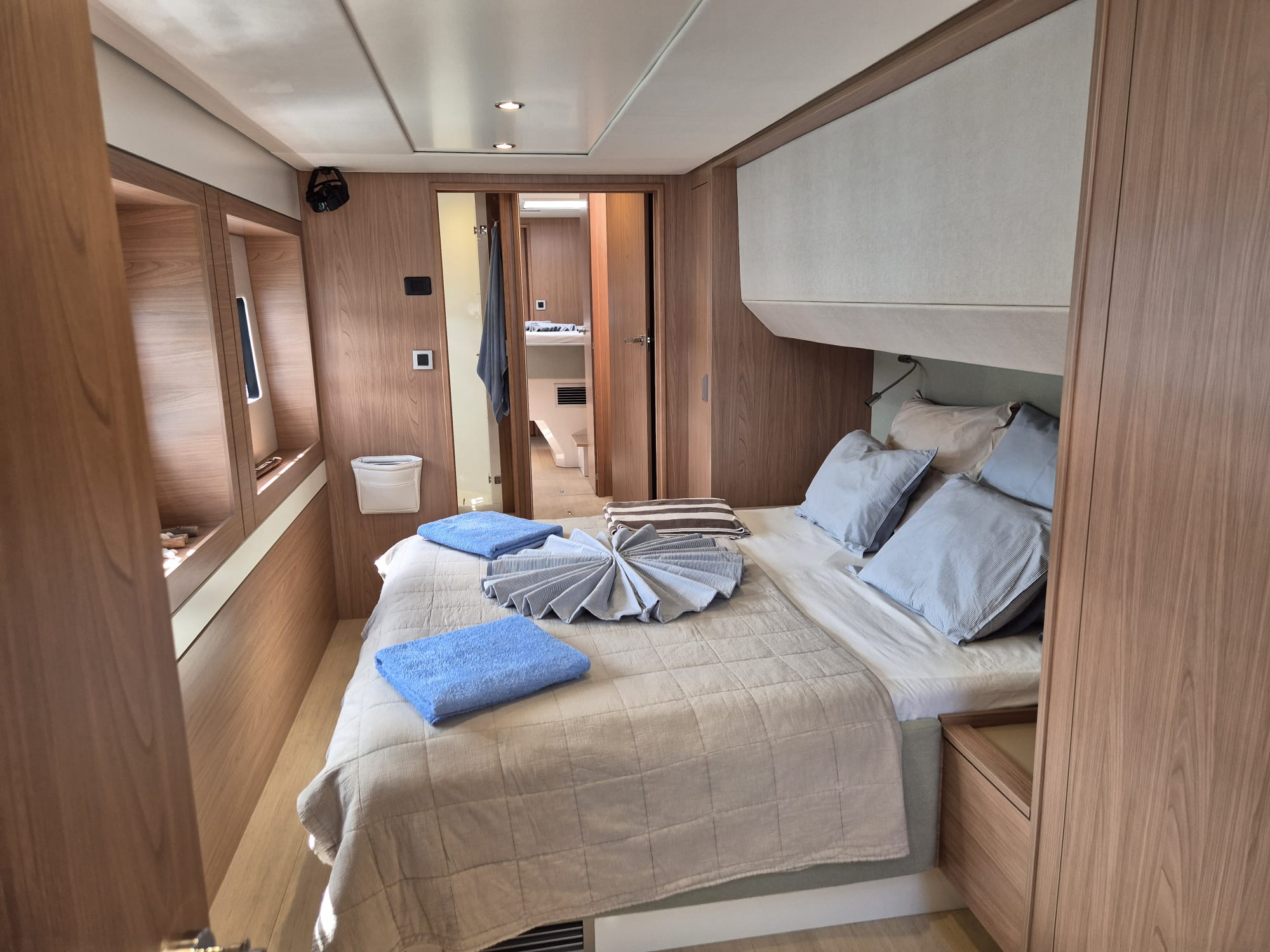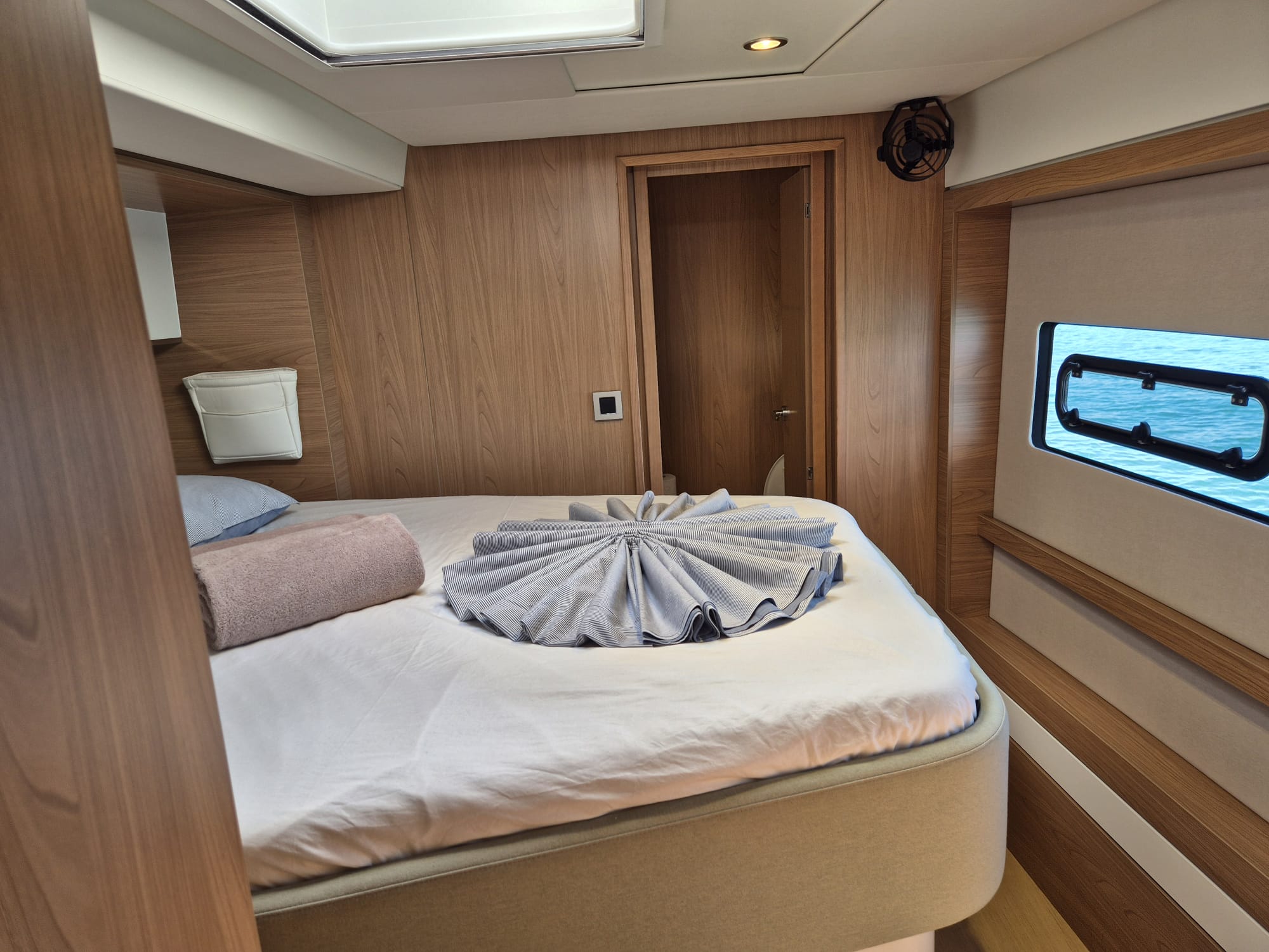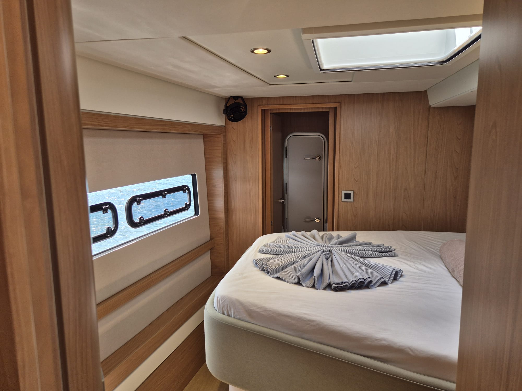 Enjoy panoramic sea views from the expansive flybridge, unwind in the forward cockpit with its sundeck, or lounge in the bright saloon with wide ocean vistas.