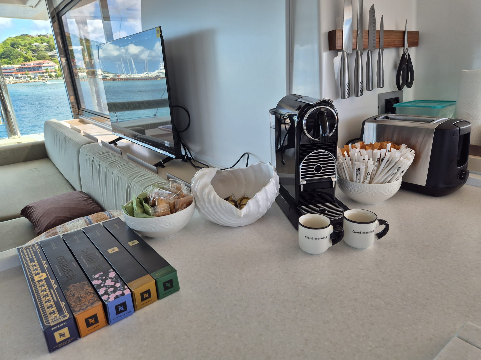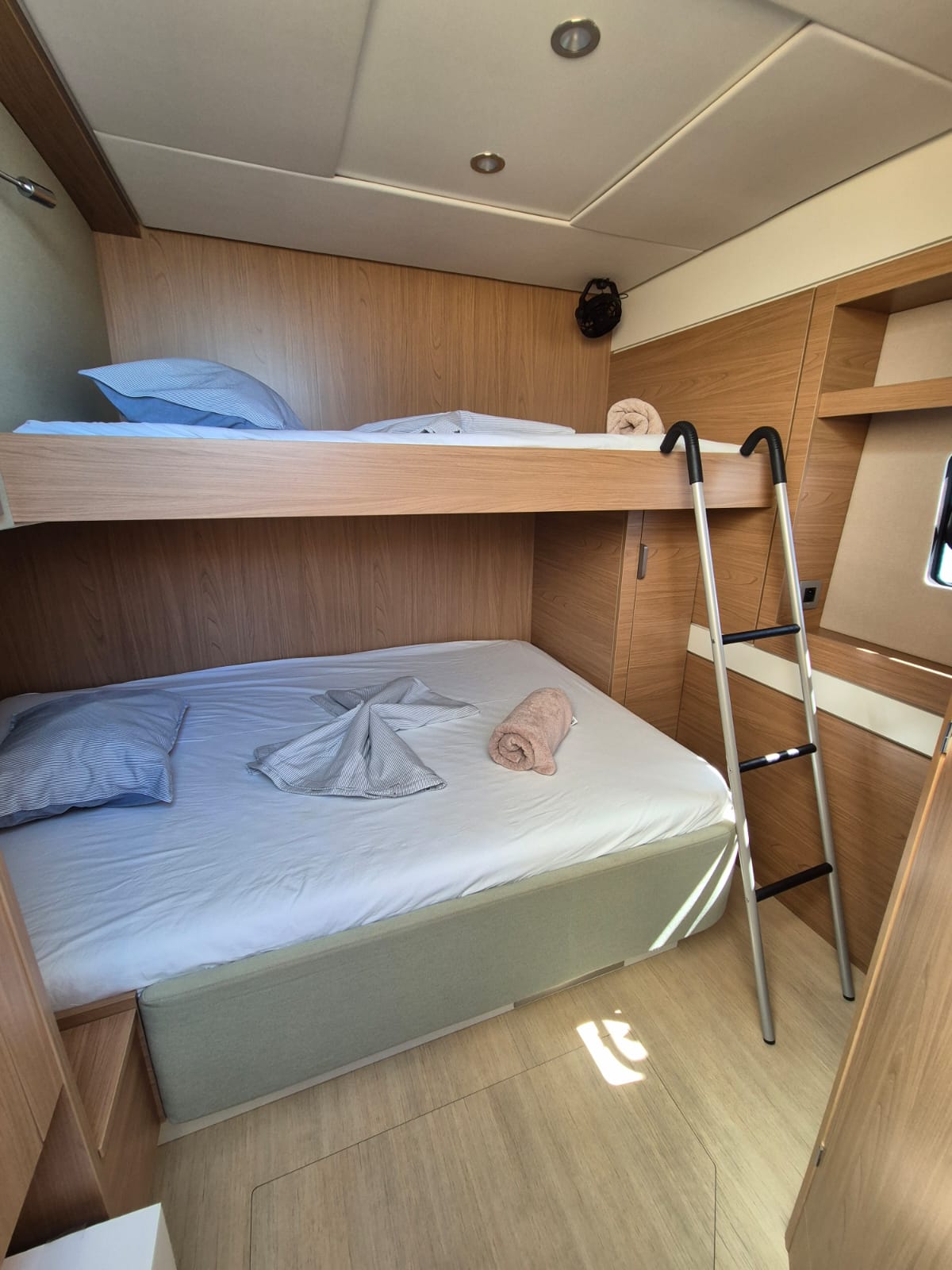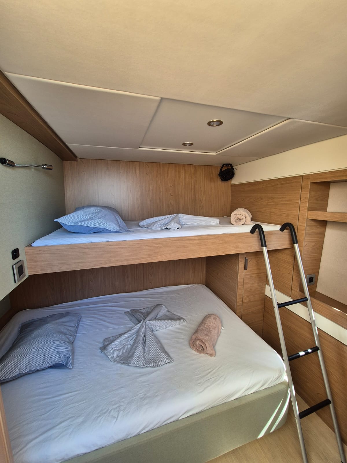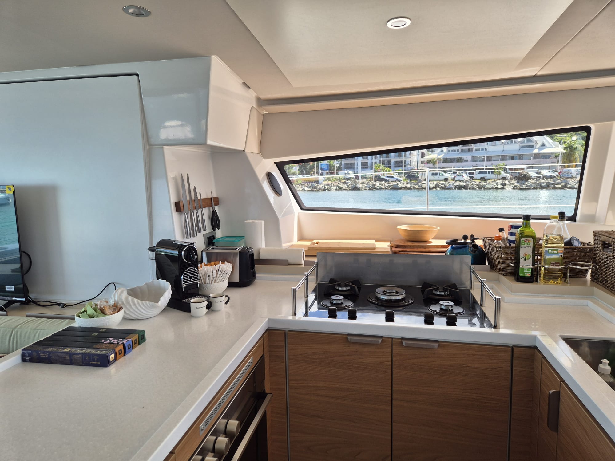 Enjoy panoramic sea views from the expansive flybridge, unwind in the forward cockpit with its sundeck, or lounge in the bright saloon with wide ocean vistas.